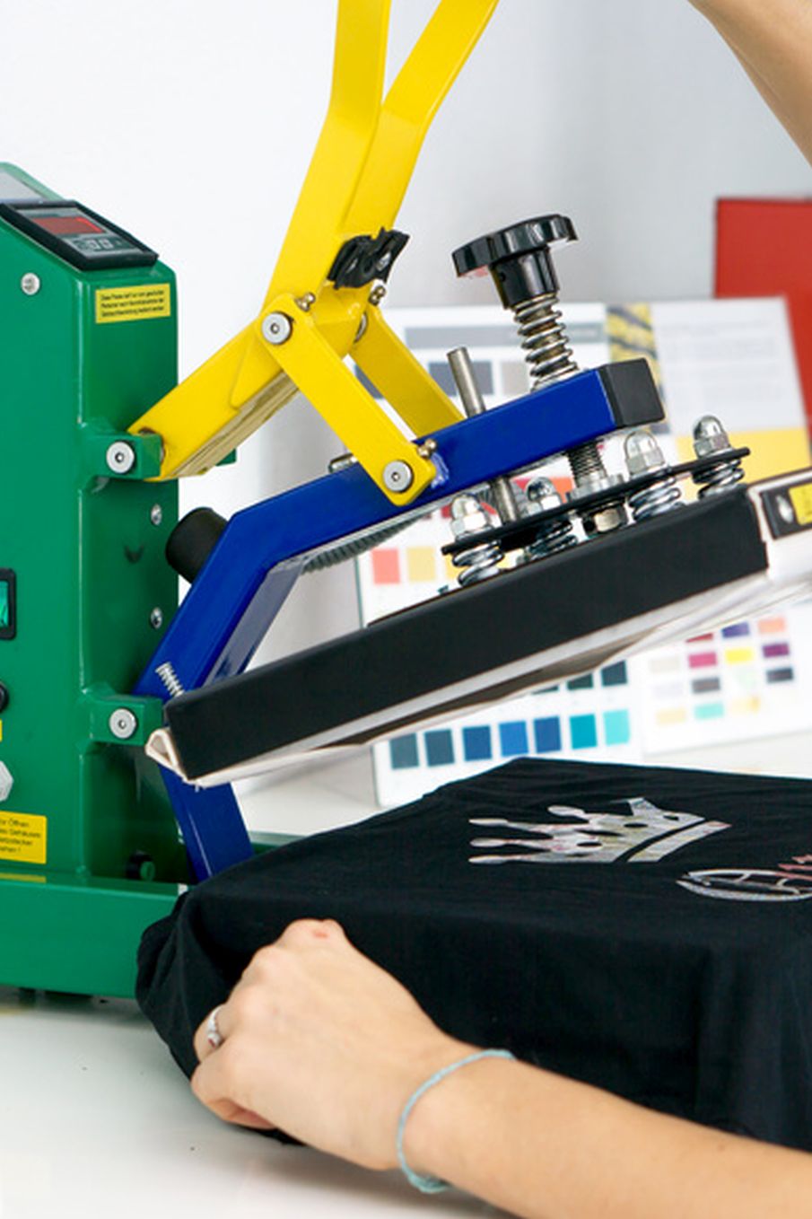 Seit 2021 bedrucken wir Textilien, bis zu 400 Stück am Tag.
